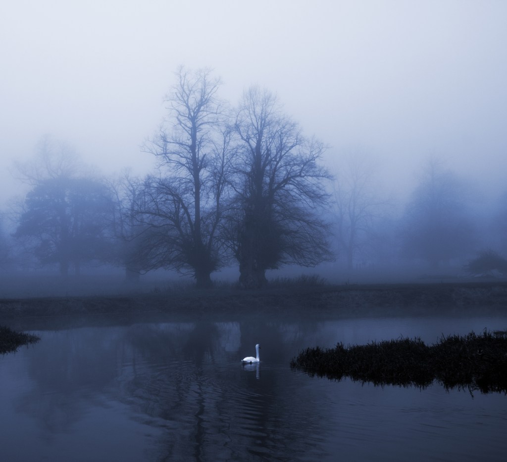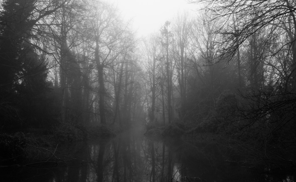 The small lake seemed like an enchanted world this dank misty morning, one could imagine one was in one of the great Parks of England such as Windsor or even Stourbridge Park.