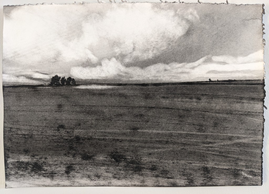It was a privilege to see Kate at work recently when she had a residence at the excellent Fen Ditton Gallery, Cambridgeshire, just a couple of miles walk by the river meadows from my house. I was entranced to see scenes from nearby fields, walked a thousand times and hardly seen, transformed into essentials of light, space and air.