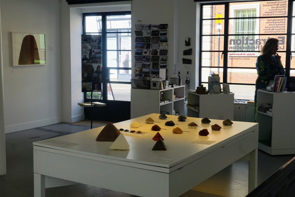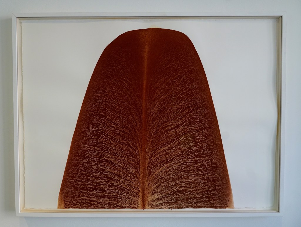 The large mycelium painting one the wall of the gallery is by Chris Drury: ‘Dust to Dust’ 2021. Mural painted in dust and ashes of a mushroom spore print on the wall. Painted in situ for GroundWork gallery by the artist using silt residue rom a local quarry, Middleton Aggregates.