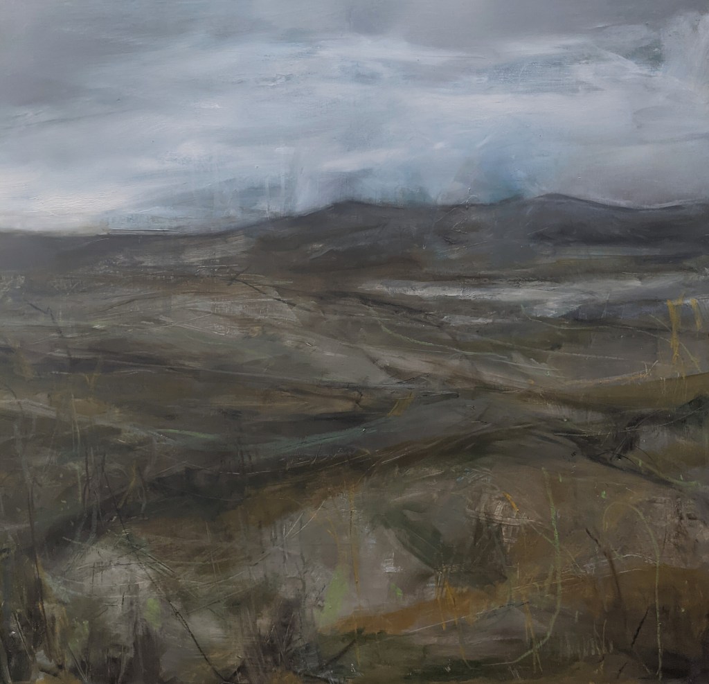 His evocative semi-abstract works seek to convey intangible atmospheres in nature while referring always to the actual physical presence of mountains, fells and fields in different weathers.
