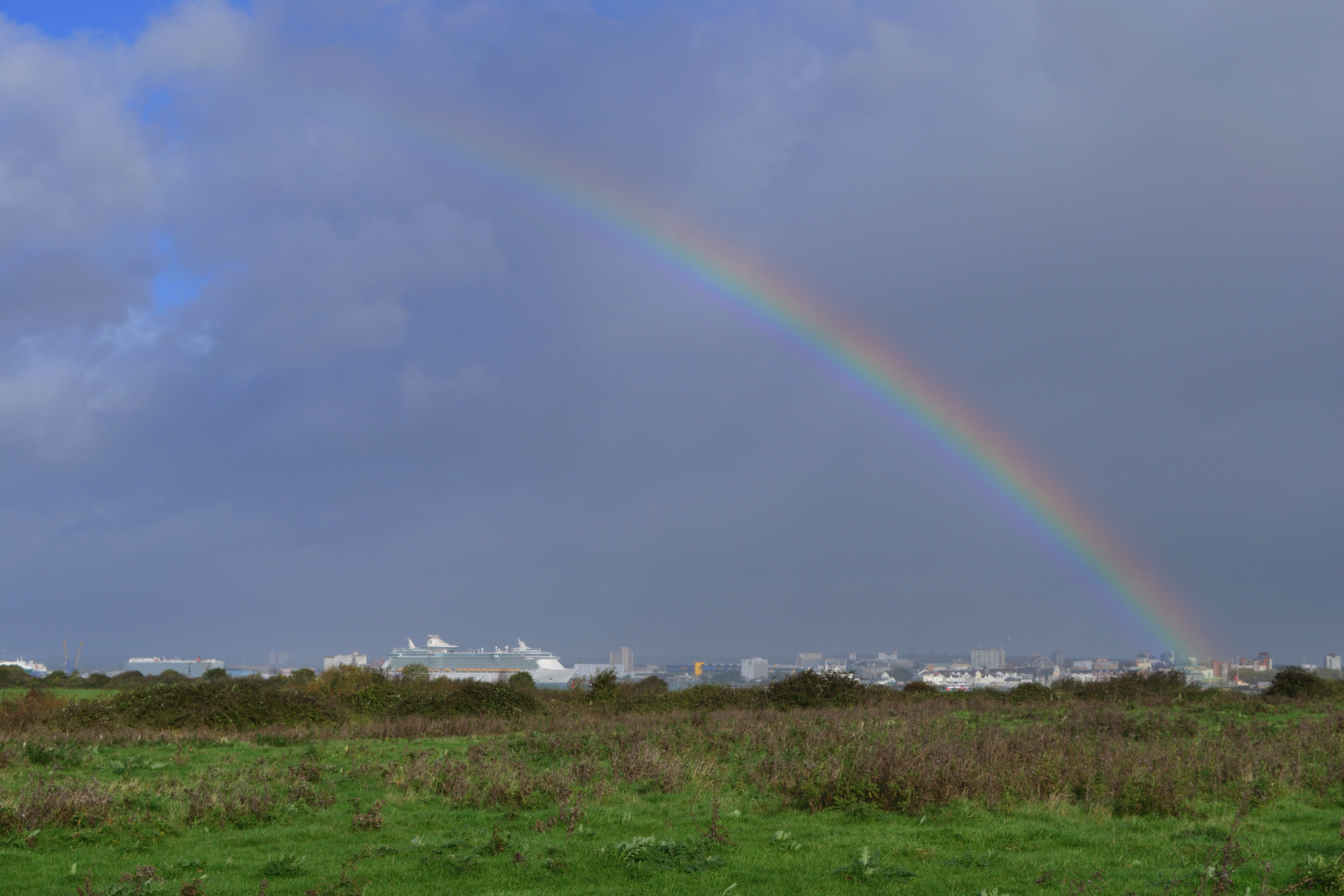 Looking over the pastures of Dibden Bay towards the docks on the other side of Southampton Water.